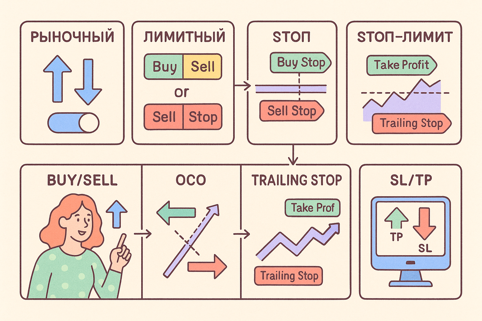 Для успешного трейдинга важно не только понимать термины, но и уметь правильно открывать и закрывать сделки. Здесь на помощь приходят ордера — инструкции брокеру о том, что и когда нужно сделать.